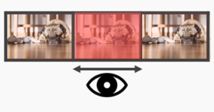 3画面同一動画は、どの画面を見ても同じであるため、ほぼ真ん中の画面に視線が固定されます(下図d)。