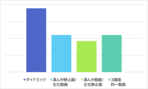 ダイナミックは3画面を一つの画面として見るため、画面の動きに合わせて横断的に視線が幅広く動きます(下図a)。