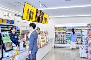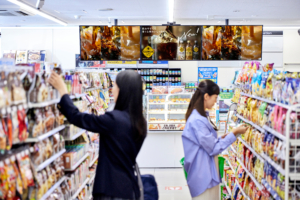 ファミリーマートは、現在約3,000店に設置されているデジタルサイネージを2023年中に約10,000店に拡大予定です。